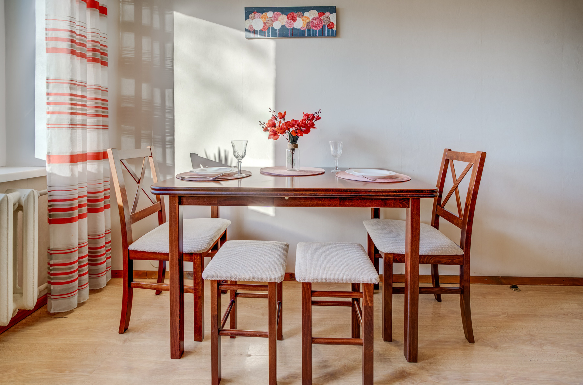Fotografavimo metu saulė spigino tiesiai į langus, kurdama tą jaukumo atmosferą, kurios neatstos joks dirbtinis apšvietimas. Butas tiesiog švytėjo iš vidaus.